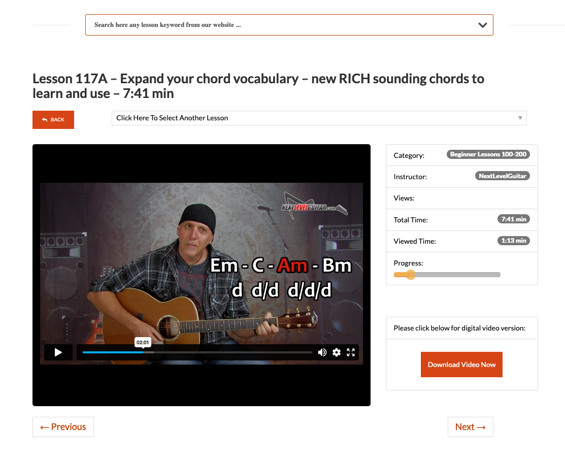 And we have a very powerful search engine on every page of the site so you can utilize the engine to drill down and find exactly what you are looking for. Plus a check system lets you know which lessons you watched as well as progress bars let you know where you left off.