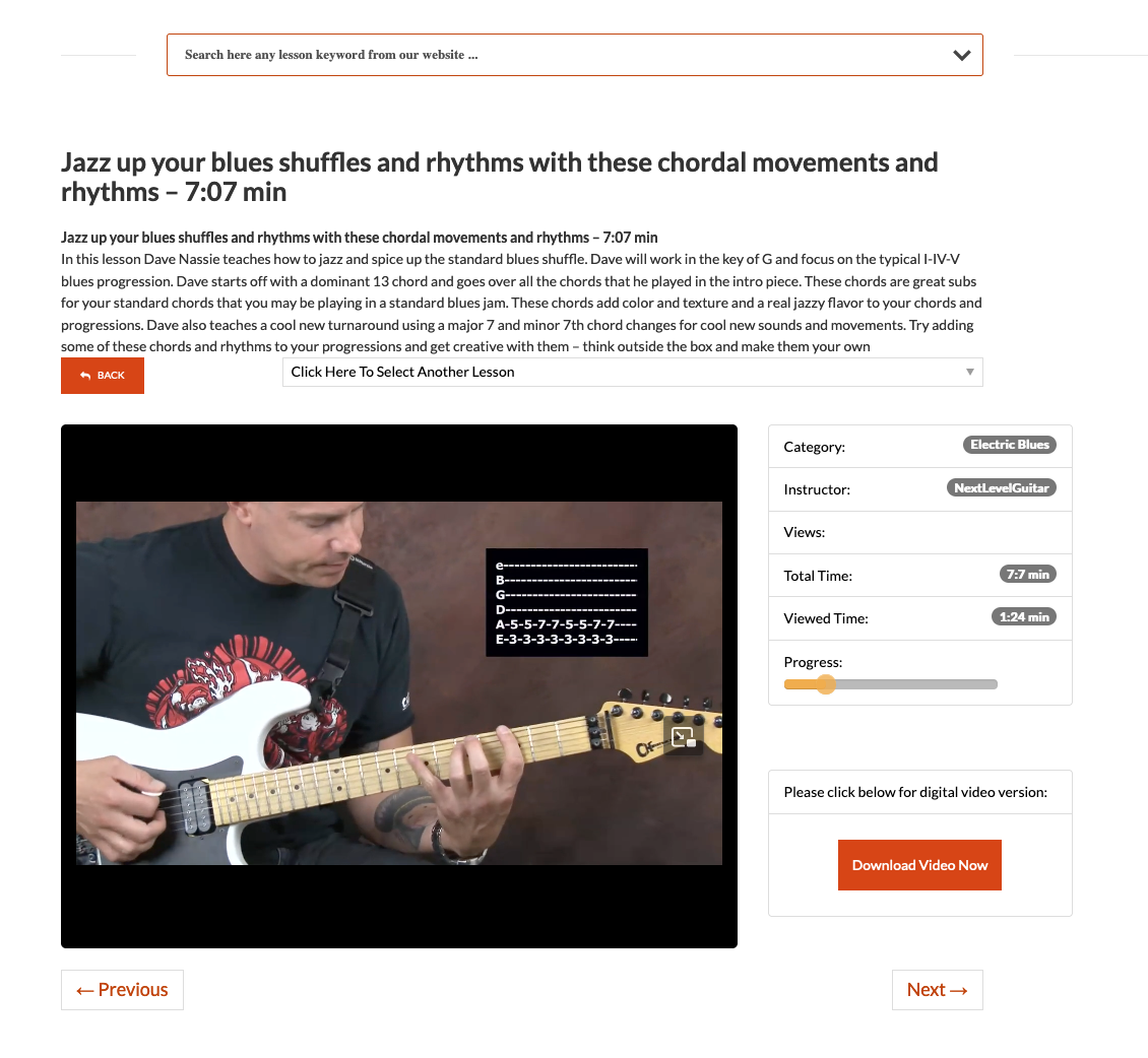 Study blues, rock, surf, rockabilly, jazz, gypsy jazz, metal & shred, country, funk, and slide guitar sections. And you can either press play and stream the lessons online or download any lesson to your computer or hard drive and watch offline when its convenient for you.