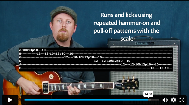 - How to combine pentatonic and natural minor scale licks together for bluesy sounds.